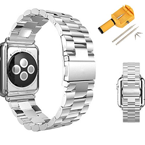 -. Title : Replacement For Apple Watch Band, iWatch Stainless Steel Metal Replacement Bands with Durable Folding Clasp + Watch Band Link Size Remover Adjuster 38mm