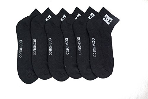 -. Binding : Apparel -. Brand : DC -. Color : Black -. Department : mens -. EAN : 0701570423724 -. Feature : Mens shoe size 6 to 12.5 / Black with multi color embroidery / 85% polyester, 10% cotton, 5% spandex / Cushion sole for comfort / Moisture Wicking Performance -. Model : 47558 -. ProductGroup : Apparel -. ProductTypeName : SOCKSHOSIERY -. Size : 10-13 -. Title : 6 Pack Mens DC Shoes Black Quarter Crew Socks White Logo -. UPC : 701570423724