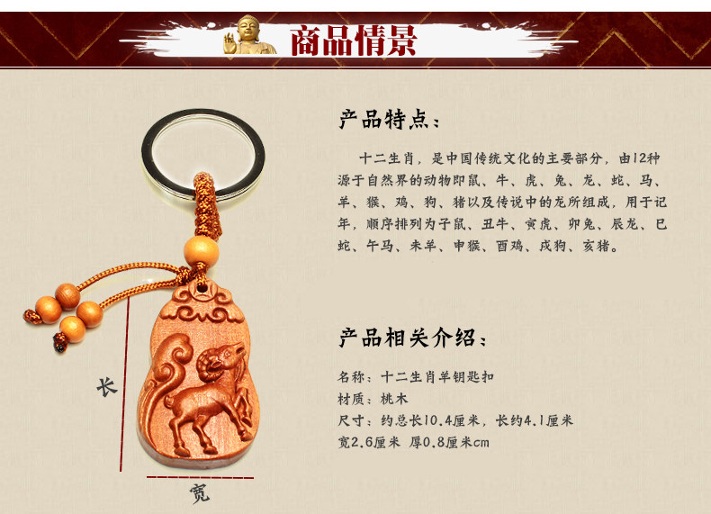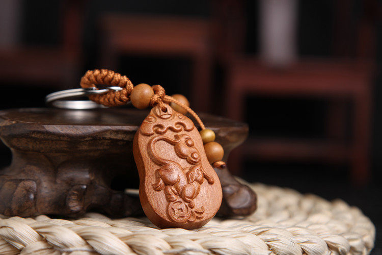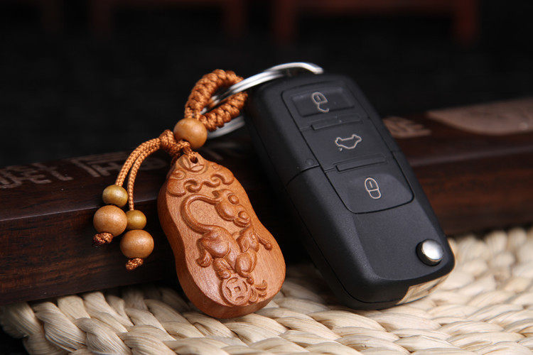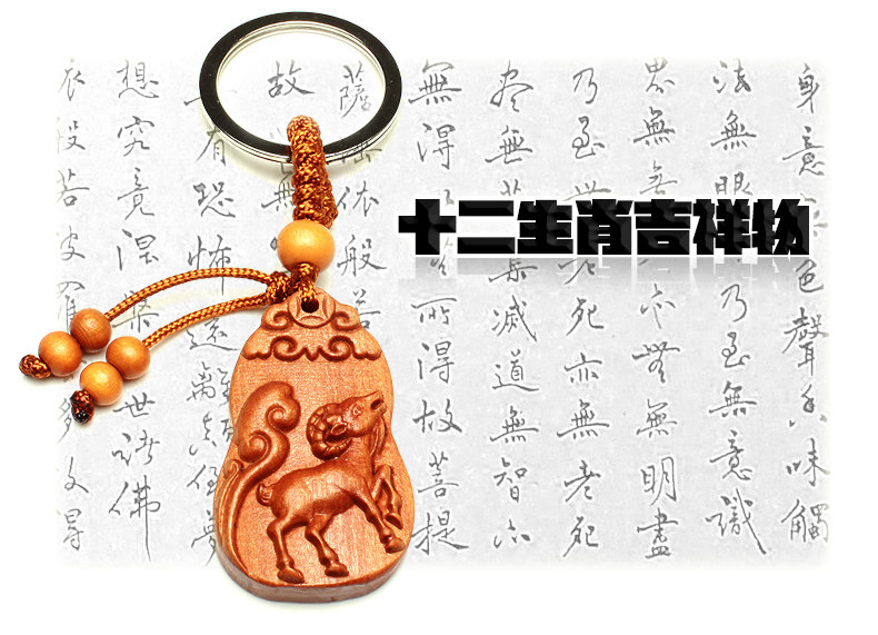 桃木木雕吊坠十二生肖属鼠牛虎兔龙蛇马羊猴鸡狗猪汽车钥匙扣挂件