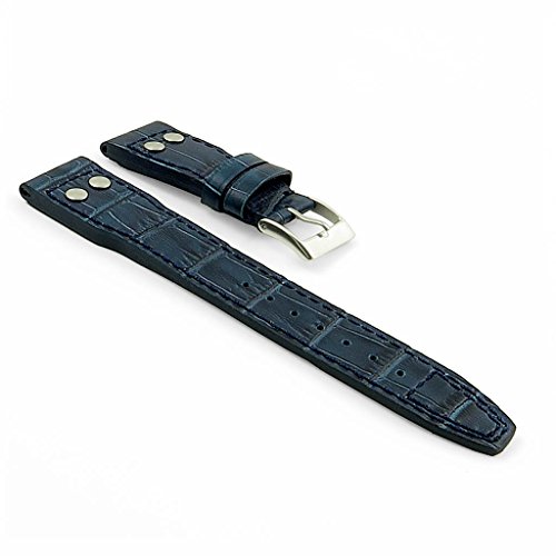 -. Title : DASSARI Aviator Croc Embossed Leather Watch Strap for Big Pilot in Blue 21mm