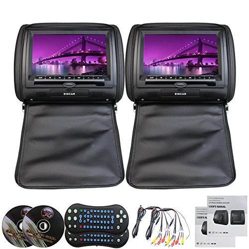 -. Title : 9" Inch Black Color Eincar Leather Pair of Car Headrest Digital Wide Screen Pillow Headrest Monitor Support Remote ControlUSB/SD Built-in IR FM Transmitter 32 Bit Games