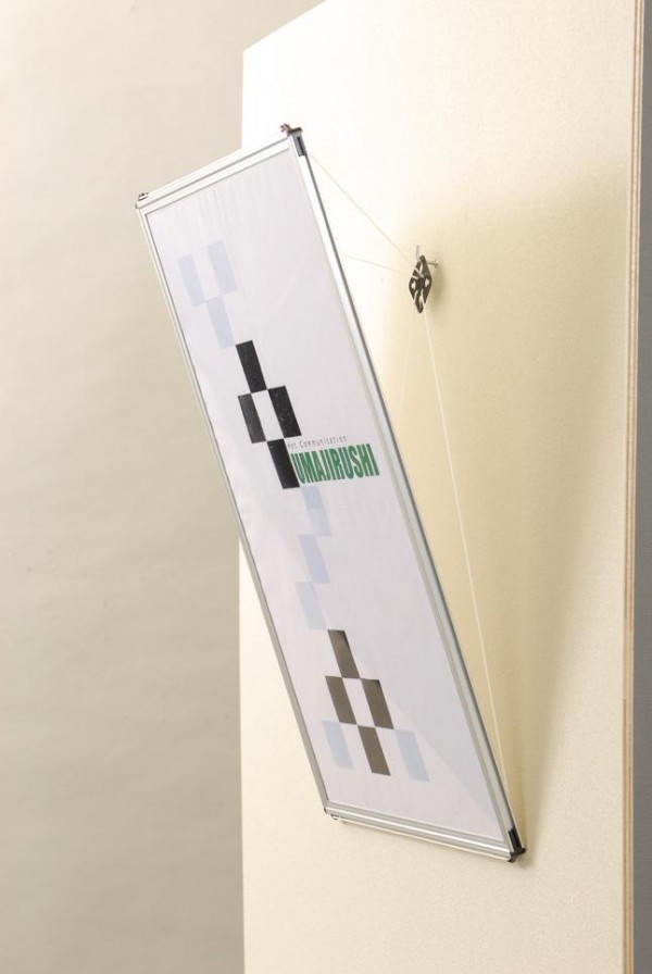 | 5度から45度の任意の角度で展示可能です。Xスライダーにひもがセットされており角度調節が簡単にできます。 |