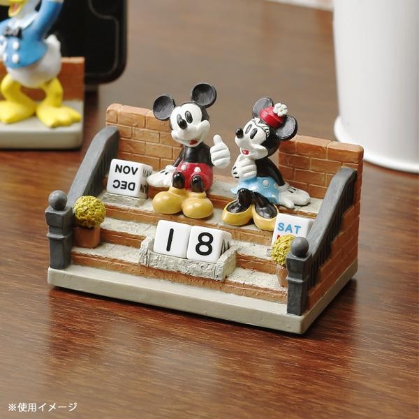 机やカウンターなどで使えるミッキー&ミニーの万年カレンダーです。