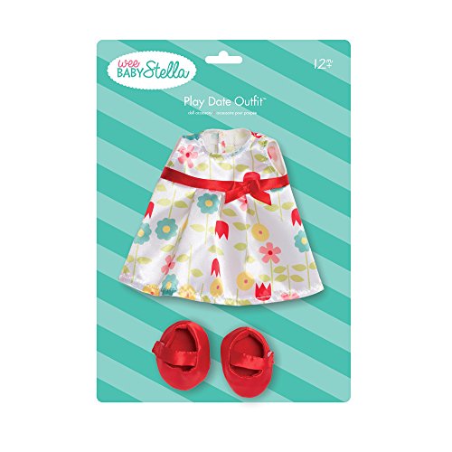 Let your little one impress all of their friends on play dates when they show up with the new play date outfit for their wee baby Stella doll! with a flowery printed day dress and matching red shoes, wee baby Stella will be ready for any play date. Wee baby Stella by Manhattan Toy is an ideal first baby doll collection that will encourage little ones to role play, nurture and care. Wee baby Stella dolls, sold separately, are completely soft and beautifully crafted with lifelike details such as a belly button and perfectly plump tummy. You can change her outfits and every doll comes with a magnetic pacifier. The wee baby Stella collection also offers a variety of soft and safe accessories that allow little ones a caregiving experience. Since 1979, Manhattan Toy has been making award-winning, high quality, educational toys for your baby, toddler or kid. From incredibly soft plush toys to baby dolls and doll accessories, our goal is to provide the safest and best toys available. All of our products, from the newest concepts to our time-tested classics, are innovatively designed to inspire imaginative play and delight our customers.Feature