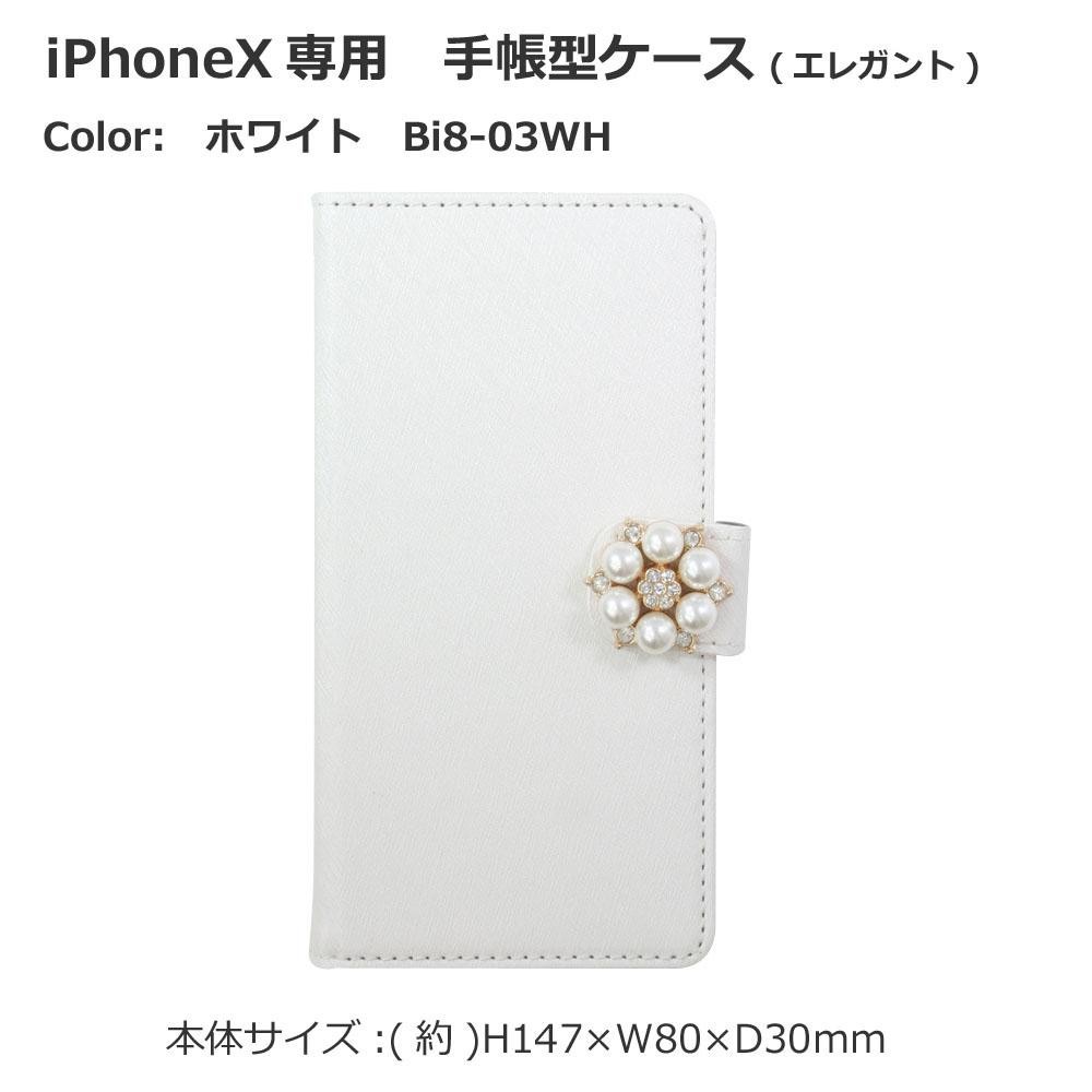 女性らしい上品なデザインが印象的な手帳型ケースです。 製造国:中国 素材・材質:ハードケース/PC(ポリカーボネート)生地/不織布 商品サイズ:約H147×W80×D30mm 重量:約94g 仕様:対応機種:iPhone X ※サプライヤー直送品 ご注文後3~4営業日後の出荷となります【商品名】iPhoneX専用 手帳型エレガントケース ホワイト Bi8-03WH