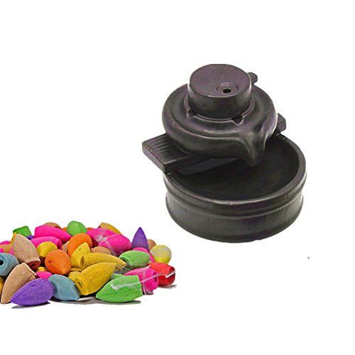 MIUSIE Ceramic Smoke Backflow Incense Burner Pocerlain Decorated Charcoal Censer Holder Home Decor Gift with 40 Cones,S3