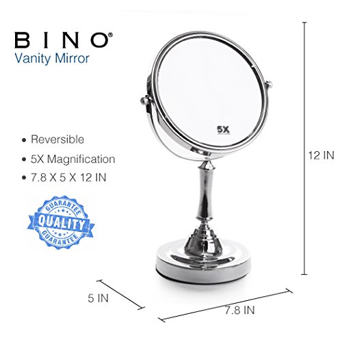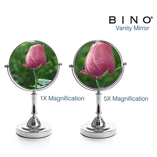 BINO 'The Academic' 6.5-Inch Double-Sided Swivel Tabletop Vanity Mirror with 5x Magnification, Chrome