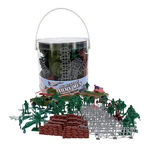 -. Feature : Army Men Modern Warfare Action Figures- Big Bucket of Modern Warfare Pieces - Over 65 Pieces / Great for amas, pretend play, enacting battles in modern setting / Includes over 65 pieces of modern US soldiers, helicopter, tanks, jetsetters and more! / Set Includes: 37 Soldiers, 4 Aircrafts, 12 Wire Mesh pieces, 8 Sandbags, 4 Brown Guns, 1 Armored Vehicle, 1 Jeep, 1 Transport Aircraft, 1 Flag, 1 Flag Stand Tray