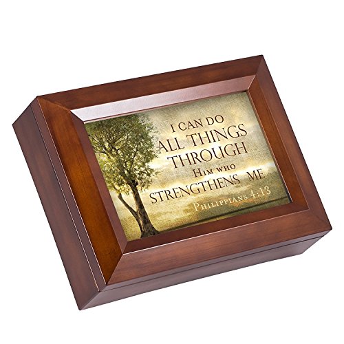 Him Who Strengthens Me Phil. 4:13 Wood Finish Jewelry Music Box Plays You are My Sunshine