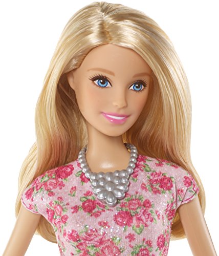 - Barbie doll looks picture-perfect in a floral pink dress