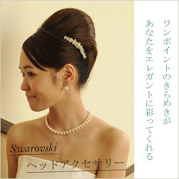 ティアラとして、ウェディングベールとのコーディネートももちろん可能です。 (実際そのようにお使いいただいております。) 挙式後の披露宴や二次会、パーティーなどでは、モデルのようにヘッドドレスとしてヘアスタイルのアクセントにお使いいただけます。
