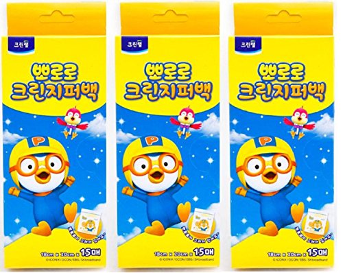 Pororo Storage Bag Zipper, Quart, 15 Count, 3 Packs (3)