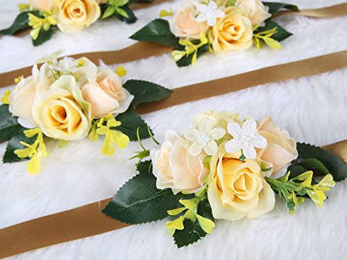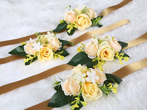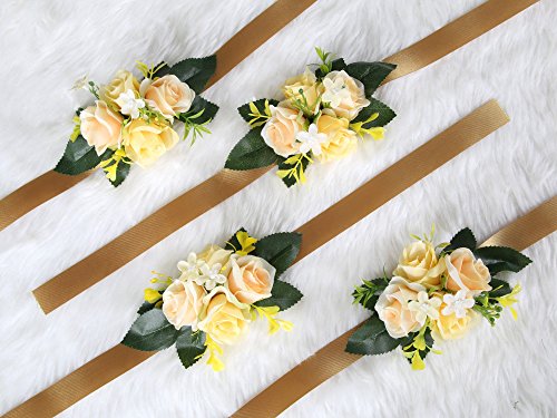 Classic bridesmaid wrist flower for Wedding Bridal Ceremony Party (Value Pack 4) (Yellow)