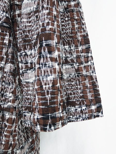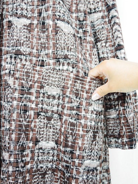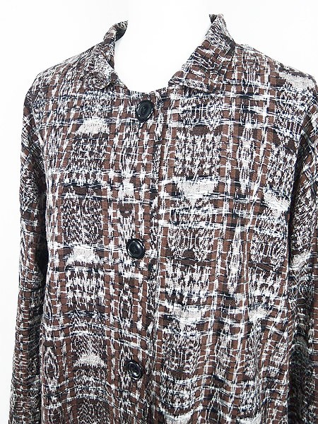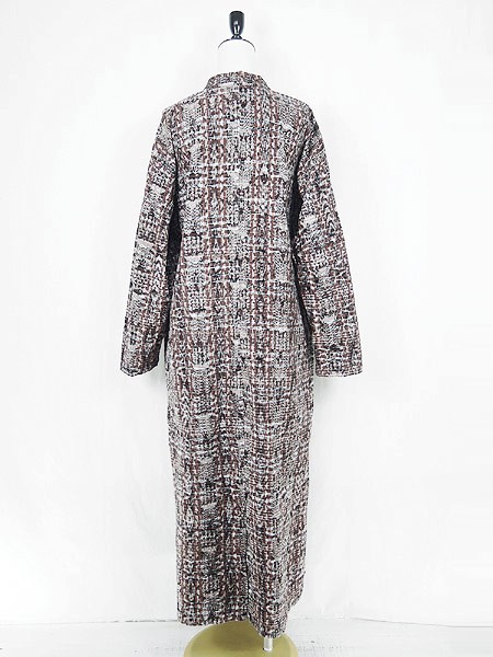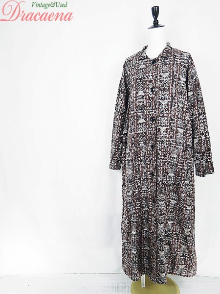 Ladies ブランド- カラー茶・黒・白 メール便不可 コンディション★★★ 素材コットン 表記サイズM スタッフコメント裏地なし。前立て、裾など数カ所に糸の出があります(着用には問題ありません)。 実寸サイズ 着丈 128 cm 身幅 62 cm 肩幅 60 cm 袖丈 50 cm スリット 29 cm ※ウエスト・ヒップ以外は平置き採寸