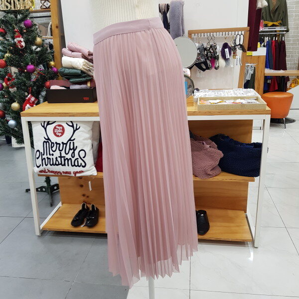 폴리 플리츠스커트입니다살랑살랑 쉬폰스타일로 여성여성한 디자인의 주름스커트입니딘허리밴딩으로 편하게 착용하실수 있는 스커트입니다