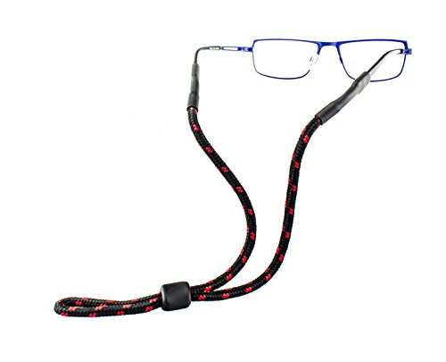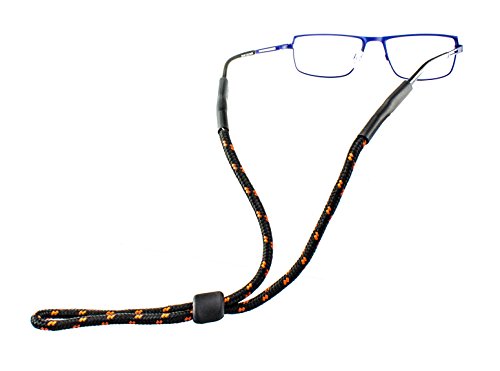 Binding : Apparel Product Description A glasses strap for lovers of outdoor sports - Keep your glasses safe: Each glasses strap is made of a durable woven-look fabric cord made of synthetic fibres. Classic deep black combined with rich colors and a pleasant feel make the glasses cord an ideal companion for hiking and other types of outdoor sports. Whether worn loose around the neck or tight around the head, you can adjust the length of the glasses strap to suit your needs using the practical stopper. Easy to use: You can attach the strap to glasses frames of varying sizes using the flexible rubber eyelets. Unlike other looped glasses straps, this model fits glasses more securely thanks to its non-slip material and tubular shape. If you wish for the strap to fit your head more snugly, do the following: Attach the outdoor glasses cord to the glasses of your choice. Pull the plastic stopper backwards and then put on the glasses. Now you can pull the stopper along the cord around your head until it has reached the desired length. And you're done! The advantages at a glance: The strap made of woven synthetic fibres is approx. 19,7 inch long and has rubber eyelets made of non-slip material attached to each end. The glasses cord is perfect for sports glasses and sunglasses as well as outdoor distance glasses and varifocals. You can choose between 4 colors to suit your glasses and your own personal style. Furthermore, the weaving technique and a diameter of approx. 0,2 inch make the glasses cord particularly durable as well as dirt and water-repellent. Contents: one single glasses strap. The glasses shown are not included! 0