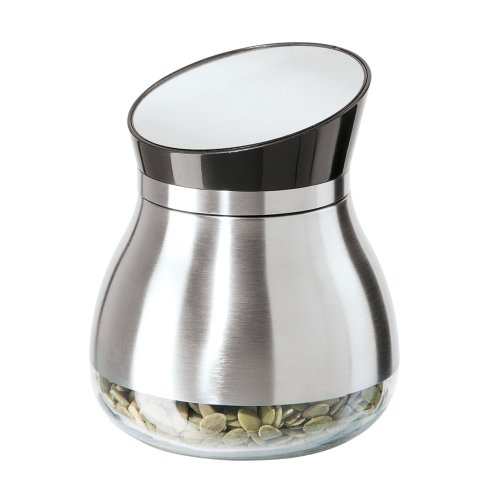 OGGI STAINLESS STEEL & GLASS STORE & POUR CANISTER SMALL 30 OZ