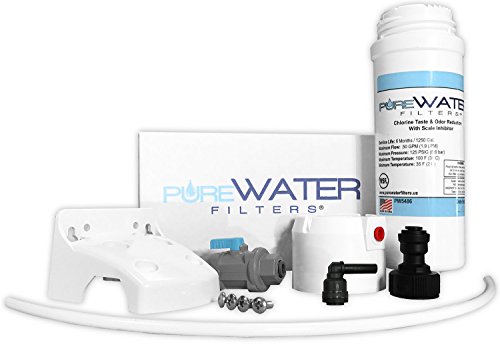 Includes New PureWater Filter, Mounting Head with Screws and Bracket (w/ 1/4" Quick Connect Fittings), 3/4" to 1/4" Water Line Connector, 15 inches of 1/4" NSF Certified Water Line, a 1/4" Shutoff Valve, and a 90 Degree Elbow for professional fit