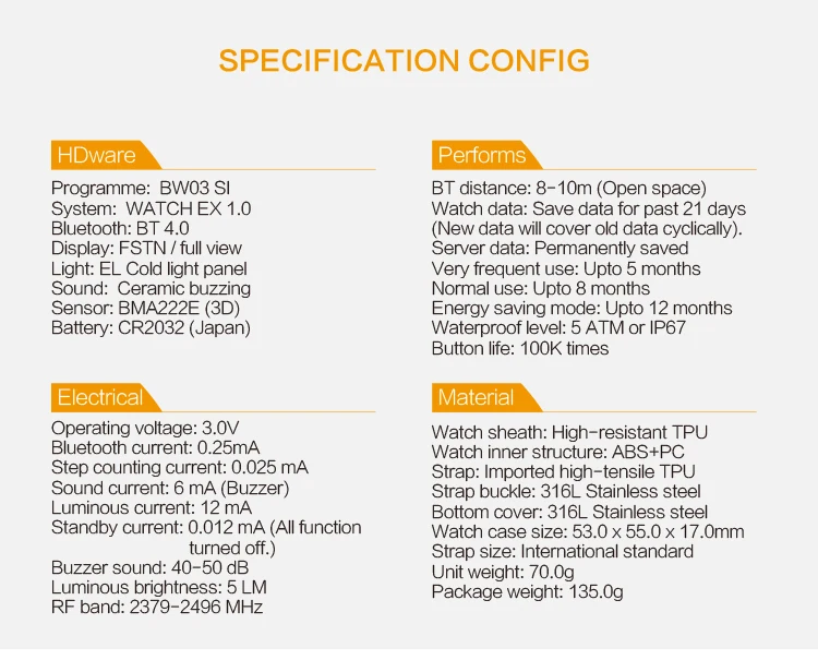 Compatability:Smart Watch for Android 4.3+ / for iOS 7.0 and above systems