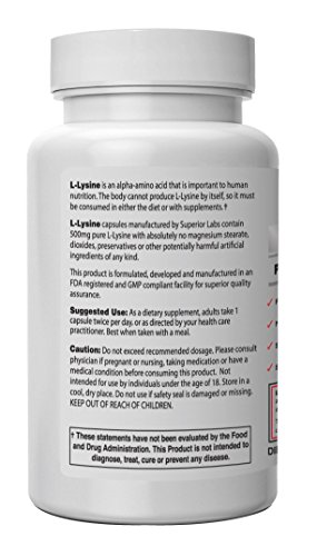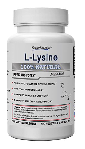 POWERFUL PURE DOSAGE: 500mg Pure Active L-Lysine, 120 Vegetable Capsules