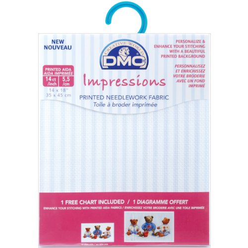 DMC DC27R-BLEU Impressions Aida Needlework Fabric, 14 by 18-Inch, Baby Blue Stripes, 14 Count