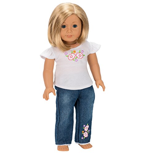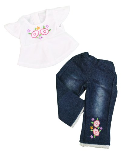 -. Binding : Toy -. Brand : Dress Along Dolly -. EAN : 0656103006274 -. Feature : Hand Made, designed especially for that special Doll in your life (Doll Not Included) / Unique designs only available on Amazon.com / 2 Piece Jeans and Shirt Outfit Includes Pair of Flower Jeans and Matching Flower Shirt / Why get dressed today when you can spend the day in your PJs / Fits all American Girl sized dolls of approximately 18" tall -. IsAdultProduct : 0 -. Label : Ride Along Dolly -. Manufacturer : Ride Along Dolly -. Model : AMG-RBW -. MPN : AMG-RBW -. PackageQuantity : 1 -. PartNumber : AMG-RBW -. ProductGroup : Toy -. ProductTypeName : TOYS_AND_GAMES -. Publisher : Ride Along Dolly -. Studio : Ride Along Dolly -. Title : Dress Along Dolly Flower Jeans and Shirt for American Dolls -. UPC : 656103006274