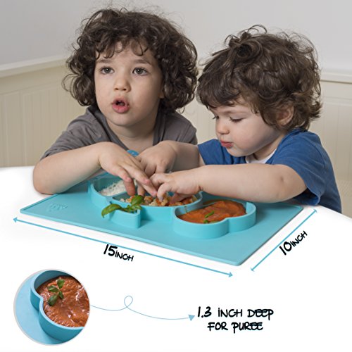 - MAKING A MESS, NO MORE STRESS! This Baby Place Mat Suctions Itself to Almost any Table Surface Avoiding Spilling of Cold or Even Hot Plates on the Floor. STORING AND CARRYING WILL NOT BE A PROBLEM ANYMORE! Our Reusable Zipper Bag makes You Enjoy Meals Anytime Anywhere! Also It's Very EASY TO CLEAN, Dishwasher and Microwave Safe.