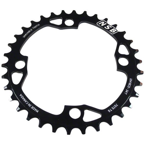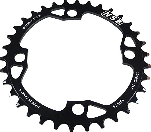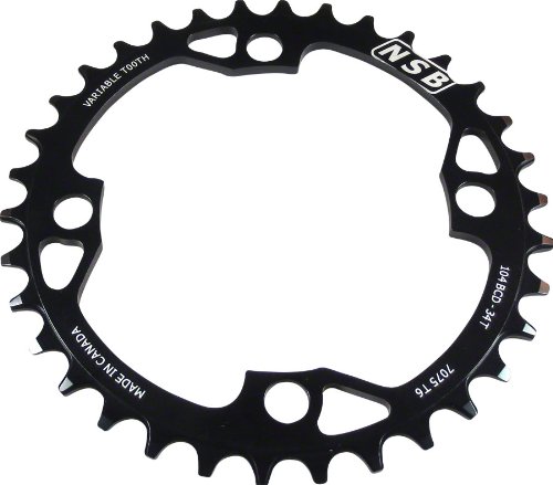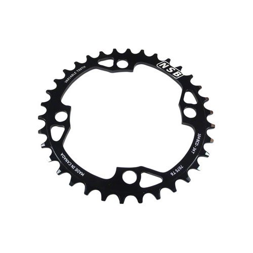 Studio : North Shore Billet Publisher : North Shore Billet Product Description North Shore Variable Tooth Billet Chainrings Variable tooth profiling ensures ultimate chain retentionMachined from solid 7075 T6 AluminumAnodized black with laser etched graphics Item SpecificationsColorBlackMaterialAluminumTeeth36Chainring BCD104Defined ColorBlackRing Position/TYPEChain Retaining Single Ring 0
