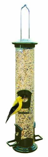 -. Feature : 15-inch tall tube feeder has four full looped perches making it easier for birds to feed and spot predators / Top, ports and base are made of powder coated die cast metal. the tube is made of polycarbonate material / The feeder's roof lifts off for easy filling. e-z clean base makes cleaning a breeze / Holds up to 11/4-pound of mixed seed / Hanger included