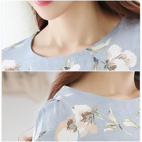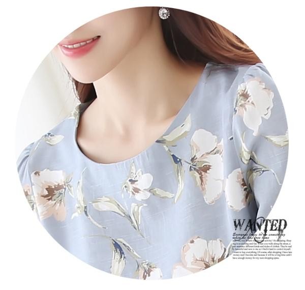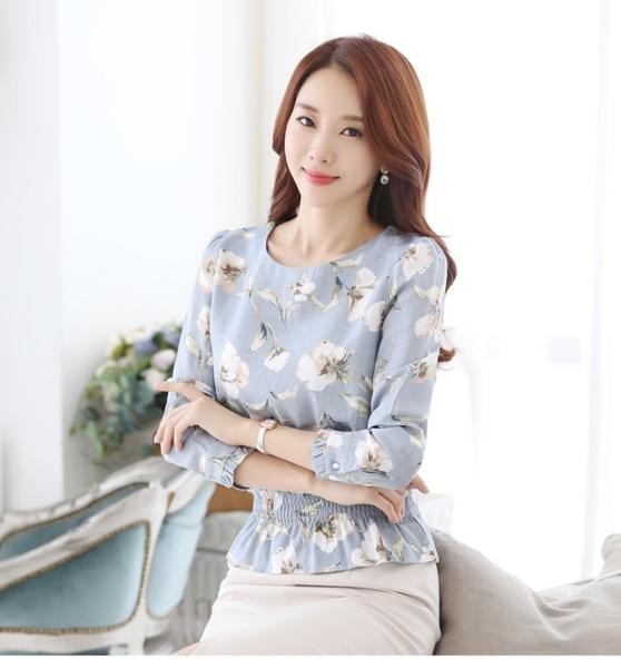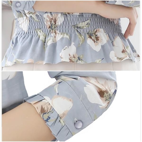 きれいめ花柄 ラウンドネック 長袖Tシャツ ぺプラムブラウス