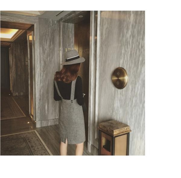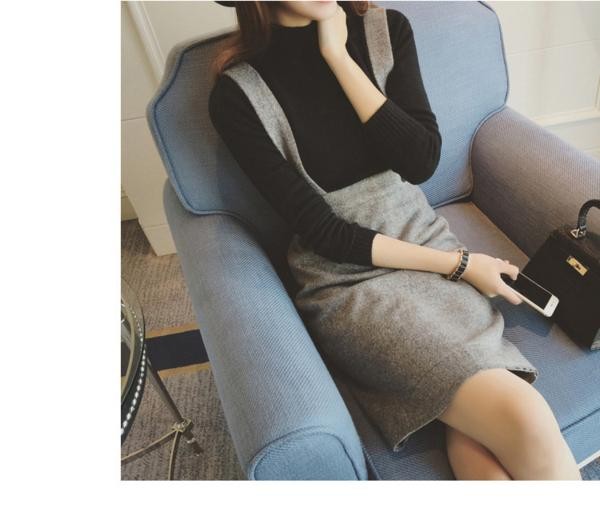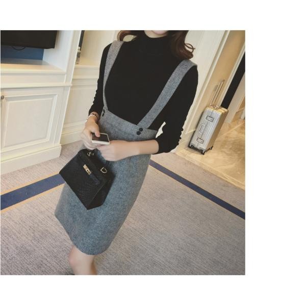 カジュアル ハイネック ニット サロペットスカート セットアップ