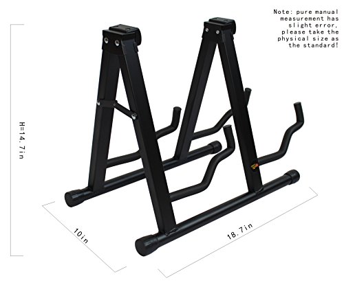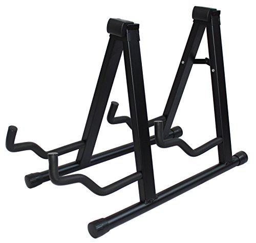 - Feature : A-Framed Universal guitar stand with Secure Lock / Lightweight, durable, metal construction with Rubber feet / Folds flat in seconds for easy storage and travel / Securely fits Electric and Acoustic guitars, as well as other instruments / Soft foam arms and rubber back rest to protect your guitar