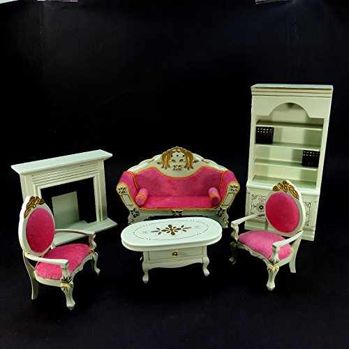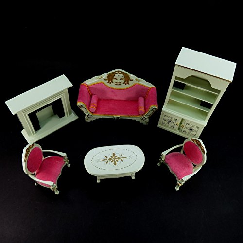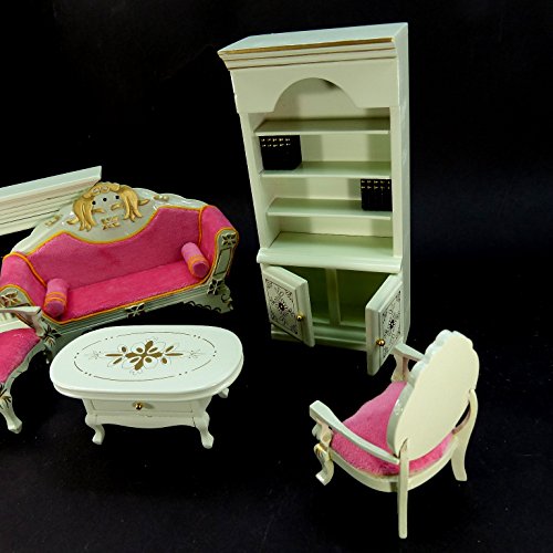 Happy Patch 목제 미니어쳐 가구 세트 고저스(gorgeous) 리빙 핑크 DH-025 【돌하우스,소꿉놀이,소파,테이블,선반】