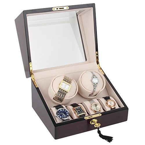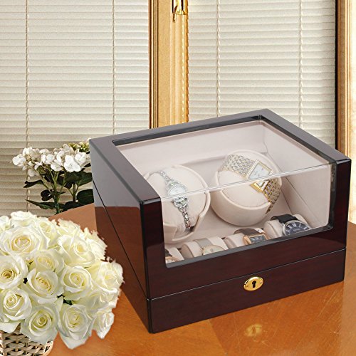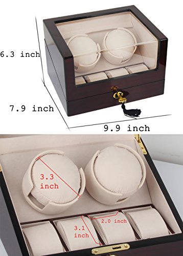 -. Feature : Fine solid wood construction. Hand polished for high gloss finish. Interior is made of top quality deluxe silsuede. / Four Winding Modes: Clockwise(CW), Counter clockwise(CCW), bidirectional, and special display mode. Excellent working keeps the accuracy of the TPD(turn per day) and Rotating position. / Four Program Settings: Mode 1 (650/TPD), Mode 2 (750/TPD), Mode 3 (850/TPD), and Mode 4 (1000/TPD). / Rotating base allows easy access to your fine watches and configurable watch retention cushions accommodate both ladies and men's watches. It can fit big watches as well. / Quiet motor.