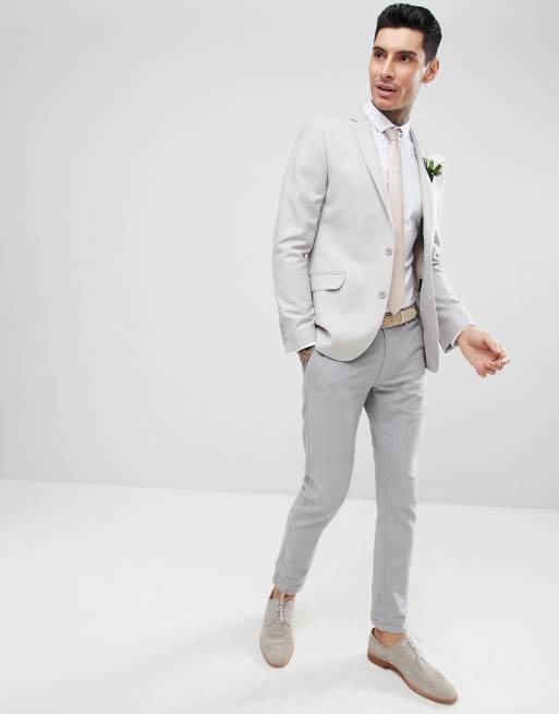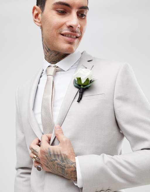 ASOS WEDDING Skinny Blazer In Putty 100% Merino Wool