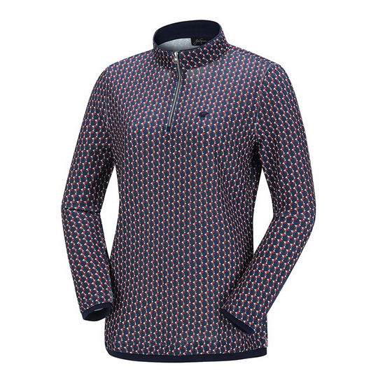 - 하이넥에 반집업 여밈으로 착장이 간편함.