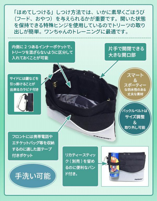 | トレーニングやお散歩中におやつなどを簡単に取り出せます! |