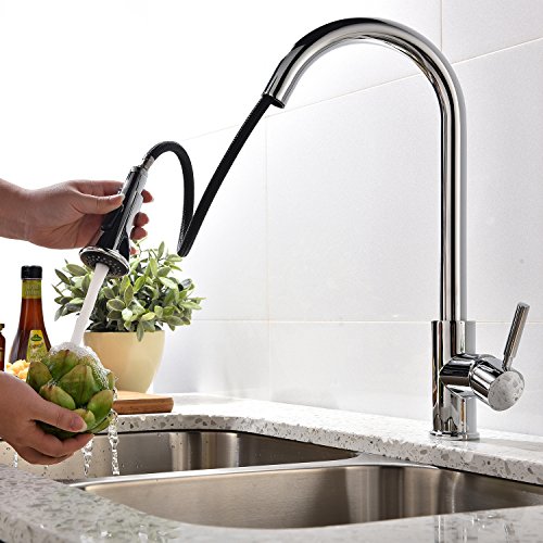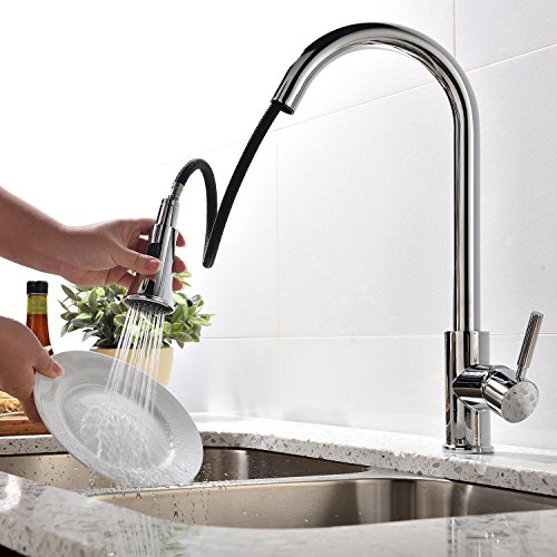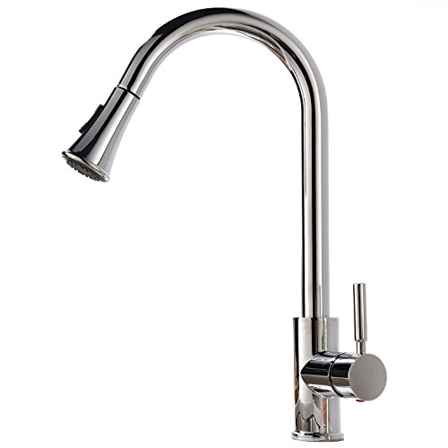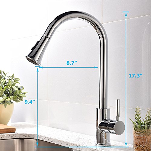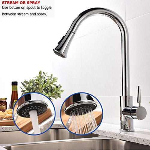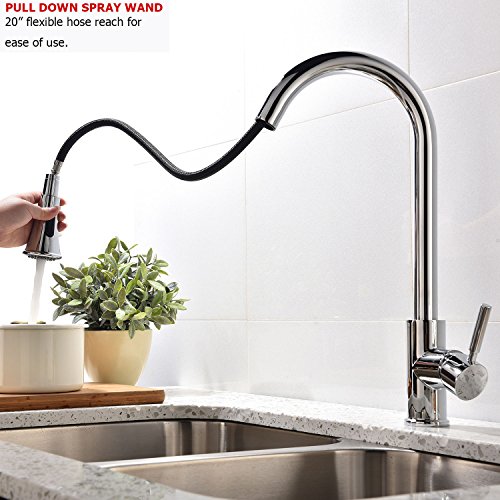 KINGO HOME Modern High Arc Stainless Steel Single Handle Pull Down Sprayer Kitchen Faucet, Polished Chrome