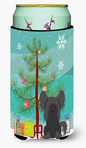 Caroline's Treasures Merry Christmas Tree Chinese Crested black Tall Boy Beverage Insulator Hugger BB4237TBC, Multicolor