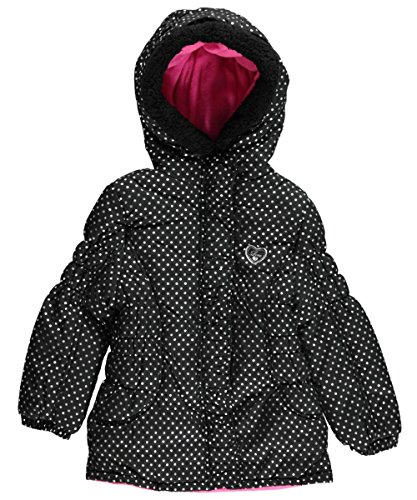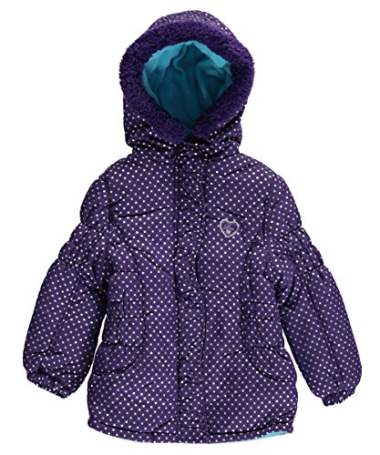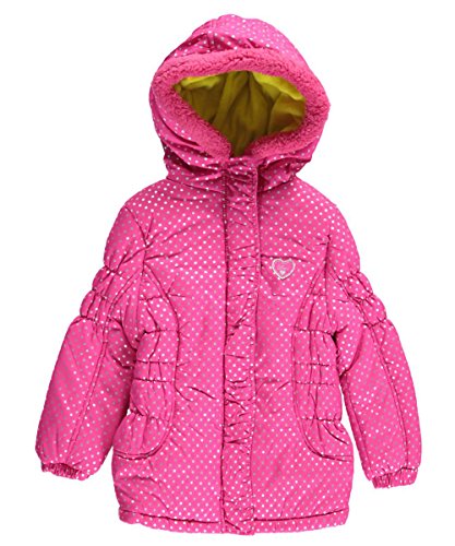 Layer on the warmth and style with this Pink Platinum jacket! The weather-resistant exterior combines with full insulation and a fleece lining. Additional details include a Velcro chin strap, metallic dotted exterior, and plush-trimmed hood. 100% Polyester Machine Wash Cold Imported