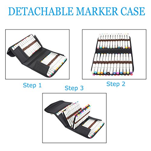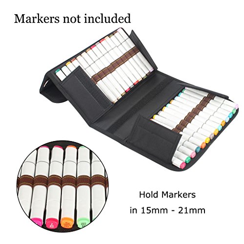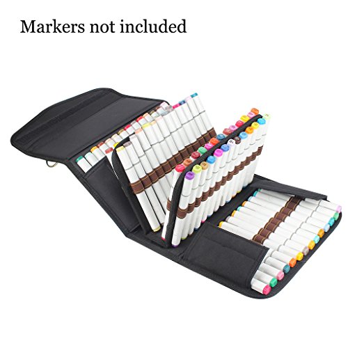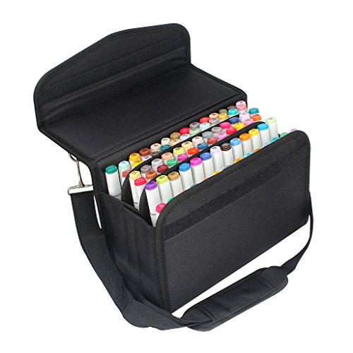 Caliart 80 Marker Carrying Case Lipstick Case 80 Marker Holder Bag Organization with Carrying Handle and Baldric for Prismacolor Marker and Copic Marker (Black)