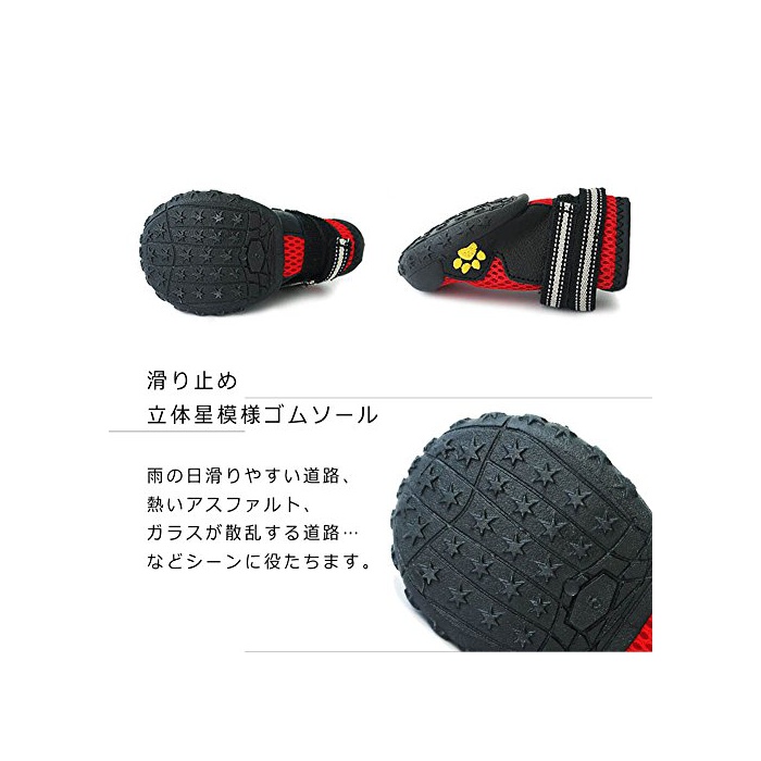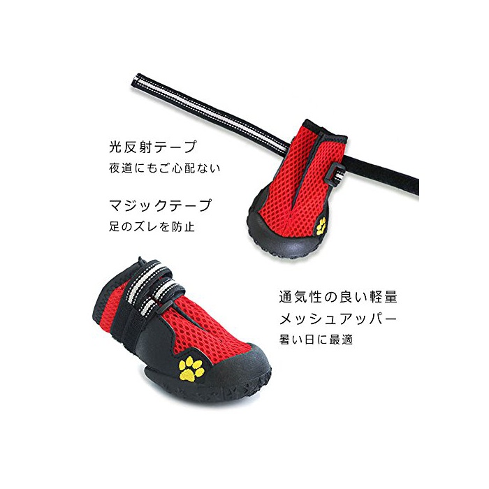 원본상품명:ドッグブ?ツ 犬靴 滑り止め メッシュ 大型犬 中型犬 通? お散? 雨の日 夜道 1足分4個セット 全2色5サイズ 犬用シュ?ズ ゴム 夏高?アスファルトから肉球保護(BLACK-8)