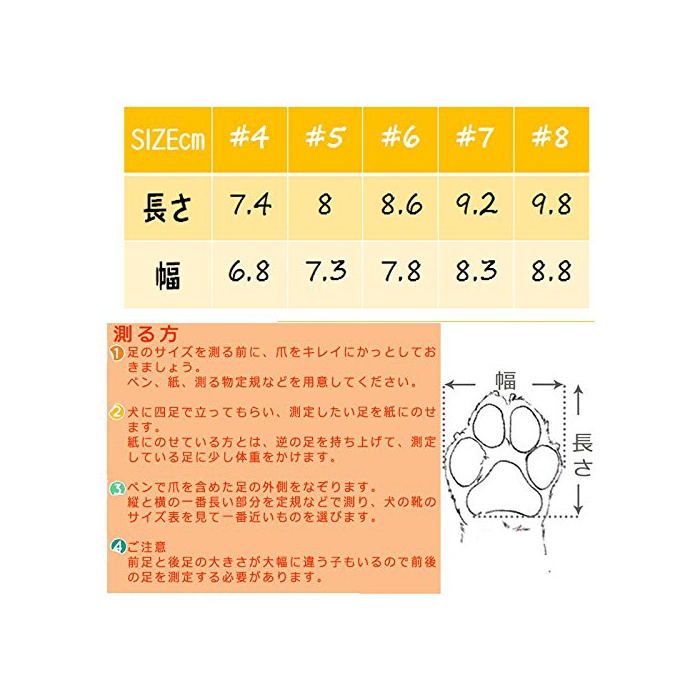 주의:개의 종류 로 인해 앞발과 뒷다리 미묘하게 크기가 다른 자식도 있으므로 때문에,구입하기 전에,반드시 전후의 발을 측정할 필요가 있습니다.사이즈표를 확인하신 후,애견의 발 보다 조금 약간 큰 사이즈를 입수해 주세요.해외로부터 발송 가져오고, 7-12일(날) 듭니다 때문에,양해 바랍니다.
