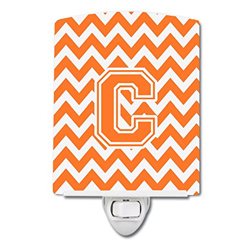 Caroline's Treasures Letter C Chevron Orange and White Ceramic Night Light, 6 x 4", Multicolor