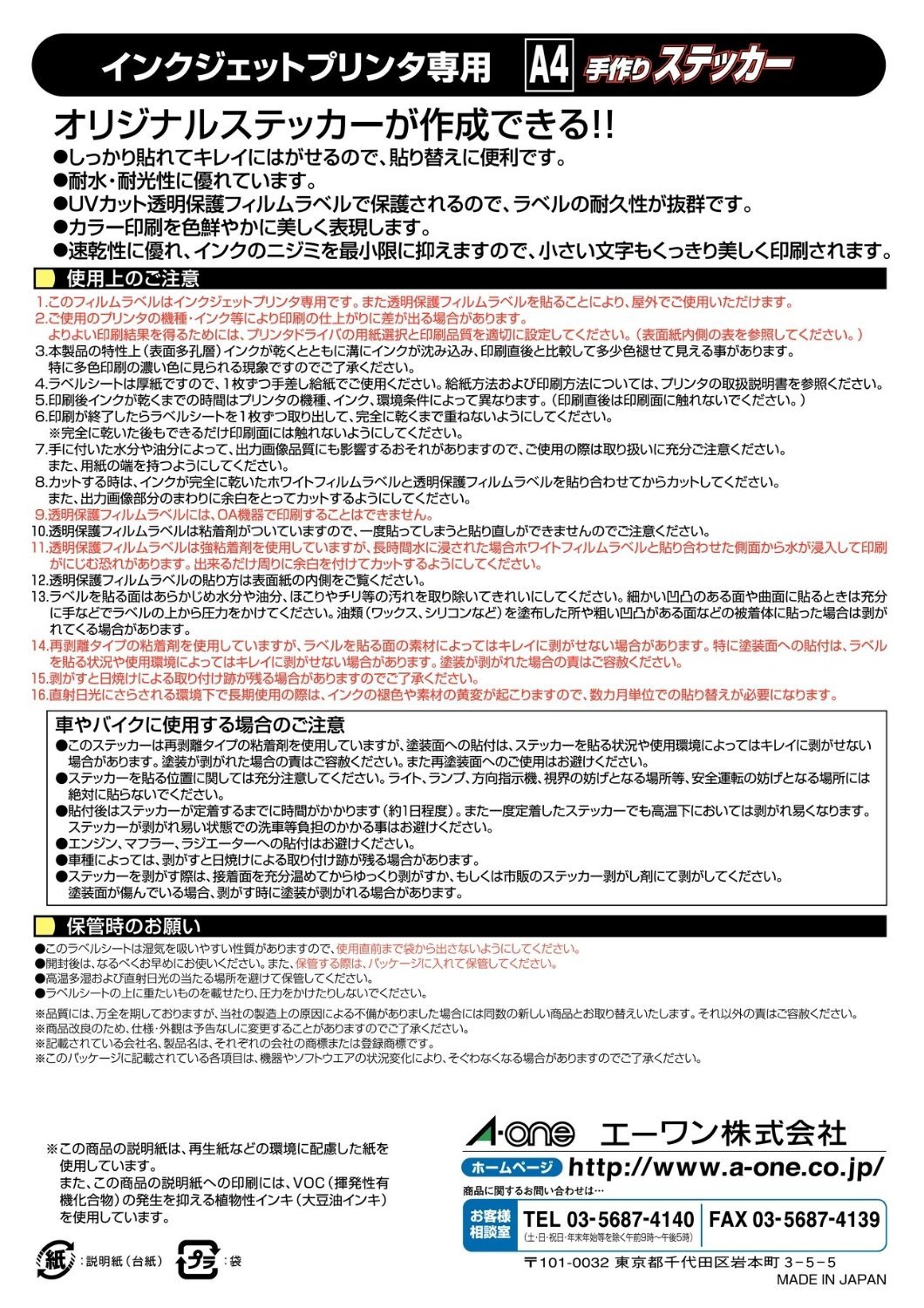 By sticker of original design printing with ink jet printer, you can handmade from 1 piece.