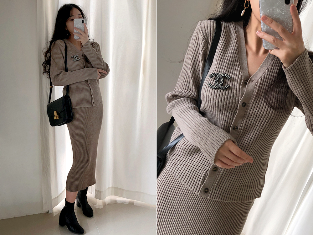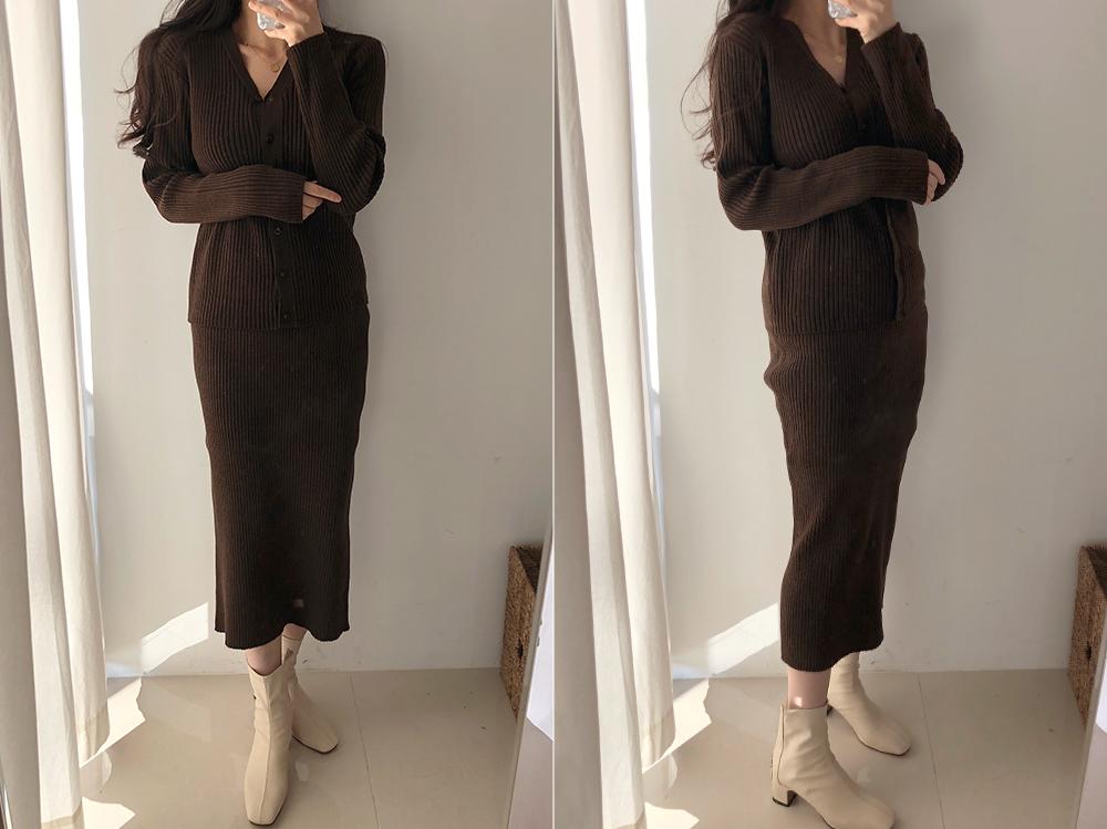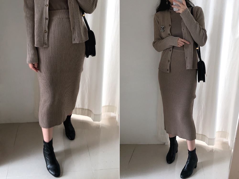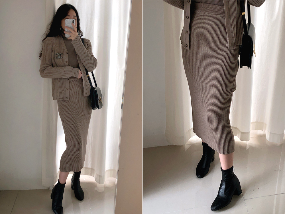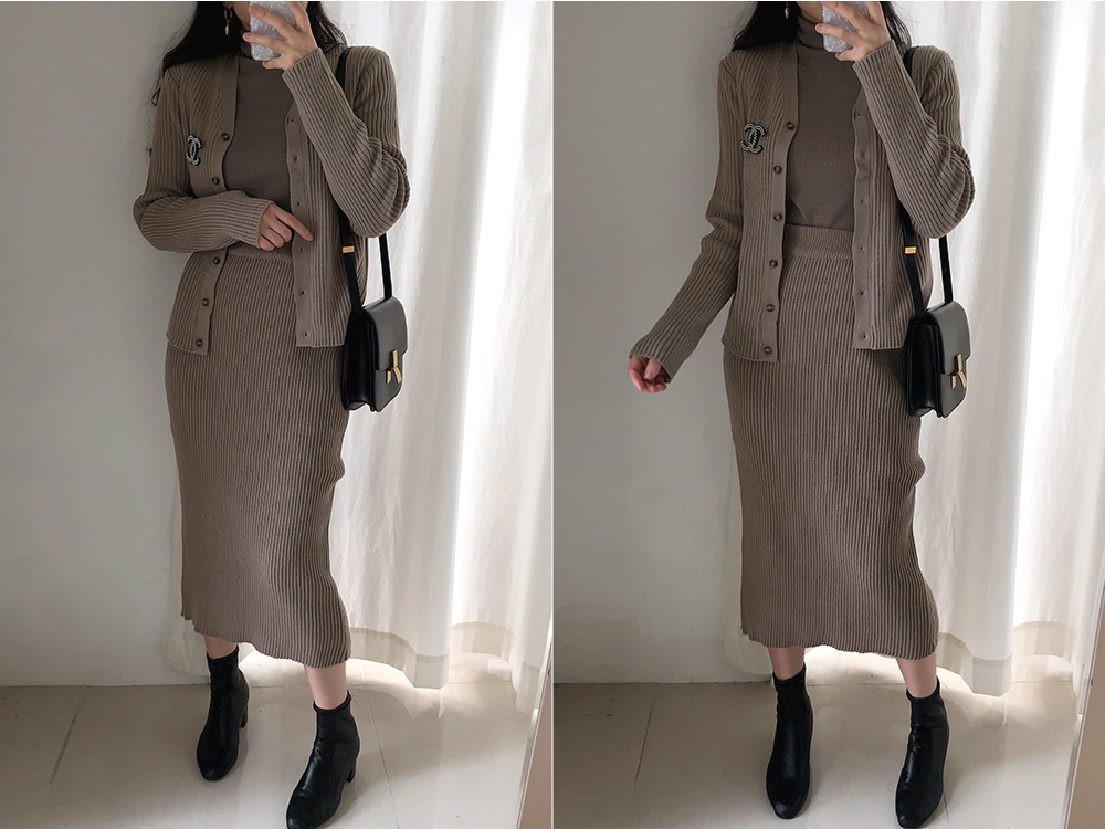 코디 걱정없는 골지 니트 소재의 투피스 소개해드려요