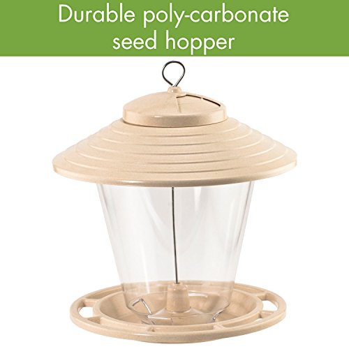 -. Feature : Wood link Going Green environment friendly hopper feeder / Roof and base made from 100% recycled plant fiber; completely biodegradable and non-toxic to the environment / Seed hopper holds up to 4 lbs. of mixed seed / Easy to fill swivel top, clear hopper allows seed visibility / Tested and certified for environmental and consumer safety (ASTM, FDA); Made in the USA