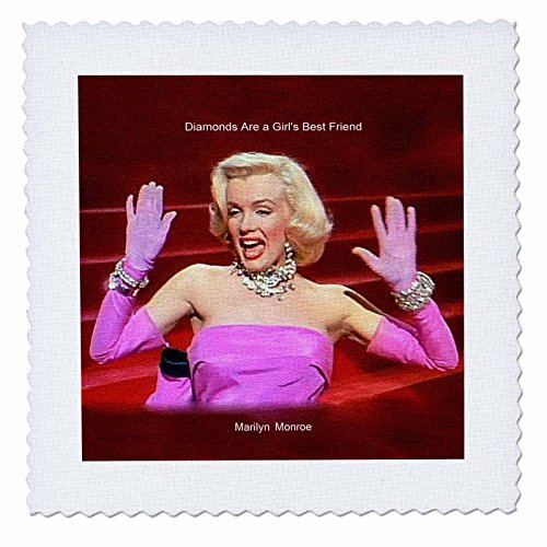3dRose qs_107176_4 Marilyn Monroe Singing Diamonds are a Girls Best Friend 'Textured' PD-US-Quilt Square, 12 by 12-Inch
