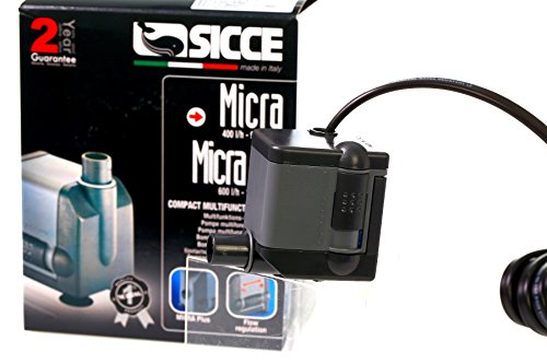 Micra Pumps are completely submersible recirculation pumps driven by a permanent magnet type synchronous motor for every type of aquarium, terrarium, internal or external fountain, landscaping construction, and for any application which requires the recirculation of water. The primary feature of these pumps is that the suction inlet is made from its bottom, which permits optimum operation even with very low water levels. Built in accordance with the most strict international safety standards, the pumps are easy to maintain and have incredible small dimensions for their elevated performance and reliability. Flow regulator, stainless steel impeller shaft, 6 watts, 1.9-feet max head. Uses 3/8 or 1/2-inch tubing.Feature