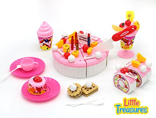 -. Title : Happy Birthday Party Fruit Cake 70+ pcs party toy set for girls ages 3+ to arrange a party with fruit cake, Swiss roll, numerous different toppings, other food items and suitable crockery